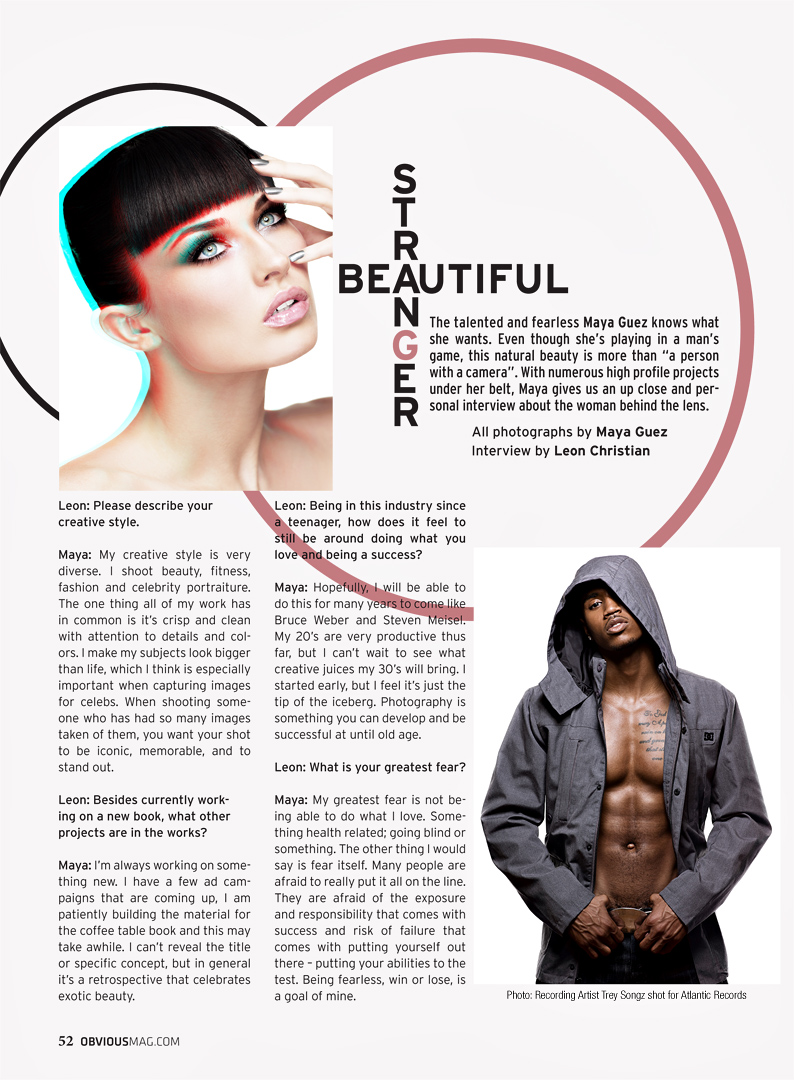 Check out this Interview I gave to OBVIOUS Magazine "Sexy Issue". Obvious magazine is a fresh fashion and life style magazine that has beautiful fashion, beauty and modeling spreads, special thanks to the multi talented magazine founder Jerris Madison and Interviewer Leon Christian for the opportunity and continued support, more collaborations will be coming soon...!