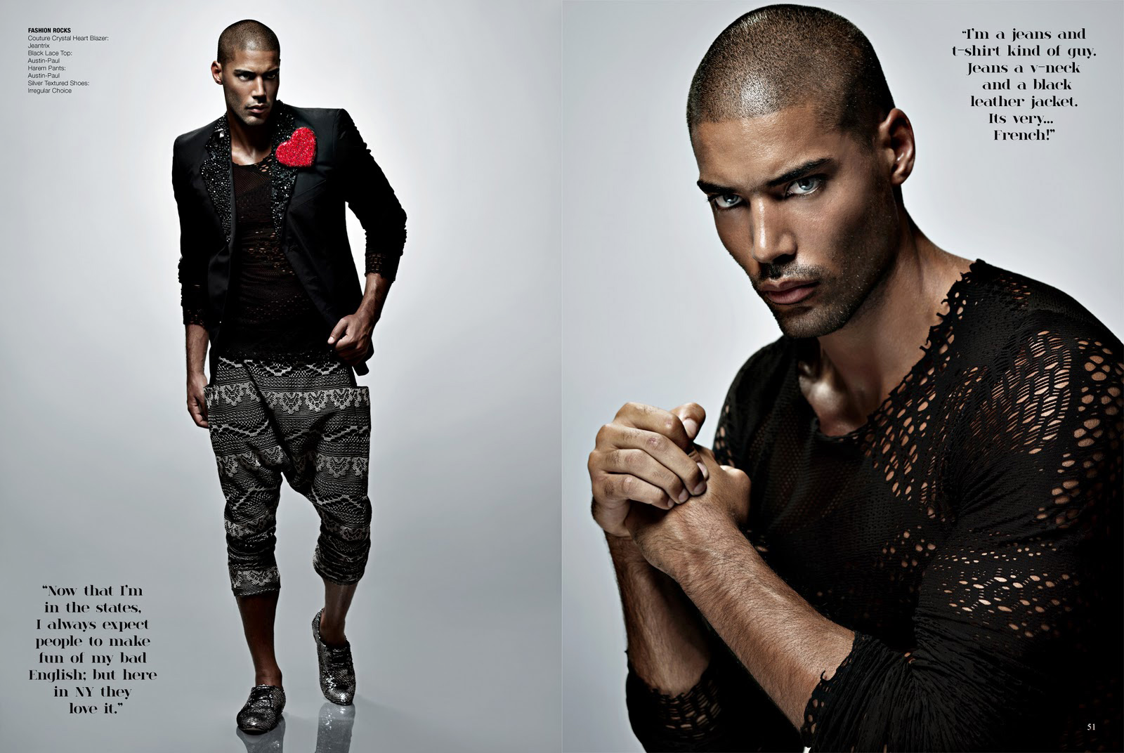 For this shoot (cover spread for KRAVE magazine) the concept was simple: Bring a European feel to the photographs and show that even a blue eye "preety boy" like Willy Monfret can rock unconventional high fashion looks with out compromising even a bit of his masculinity... His striking features, athletic physic and piercing eyes did the trick... I was most impressed with how proffsional he was in front of the camera and how easily he nailed exactly the "powerful masculine-meets fashion" feel I wanted.