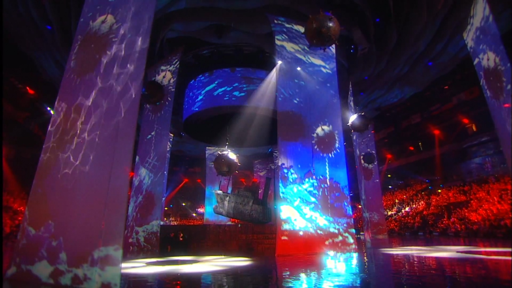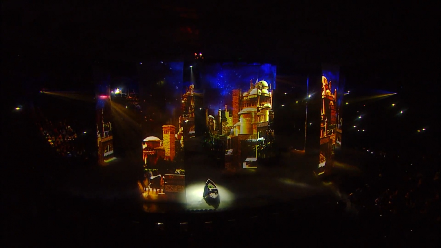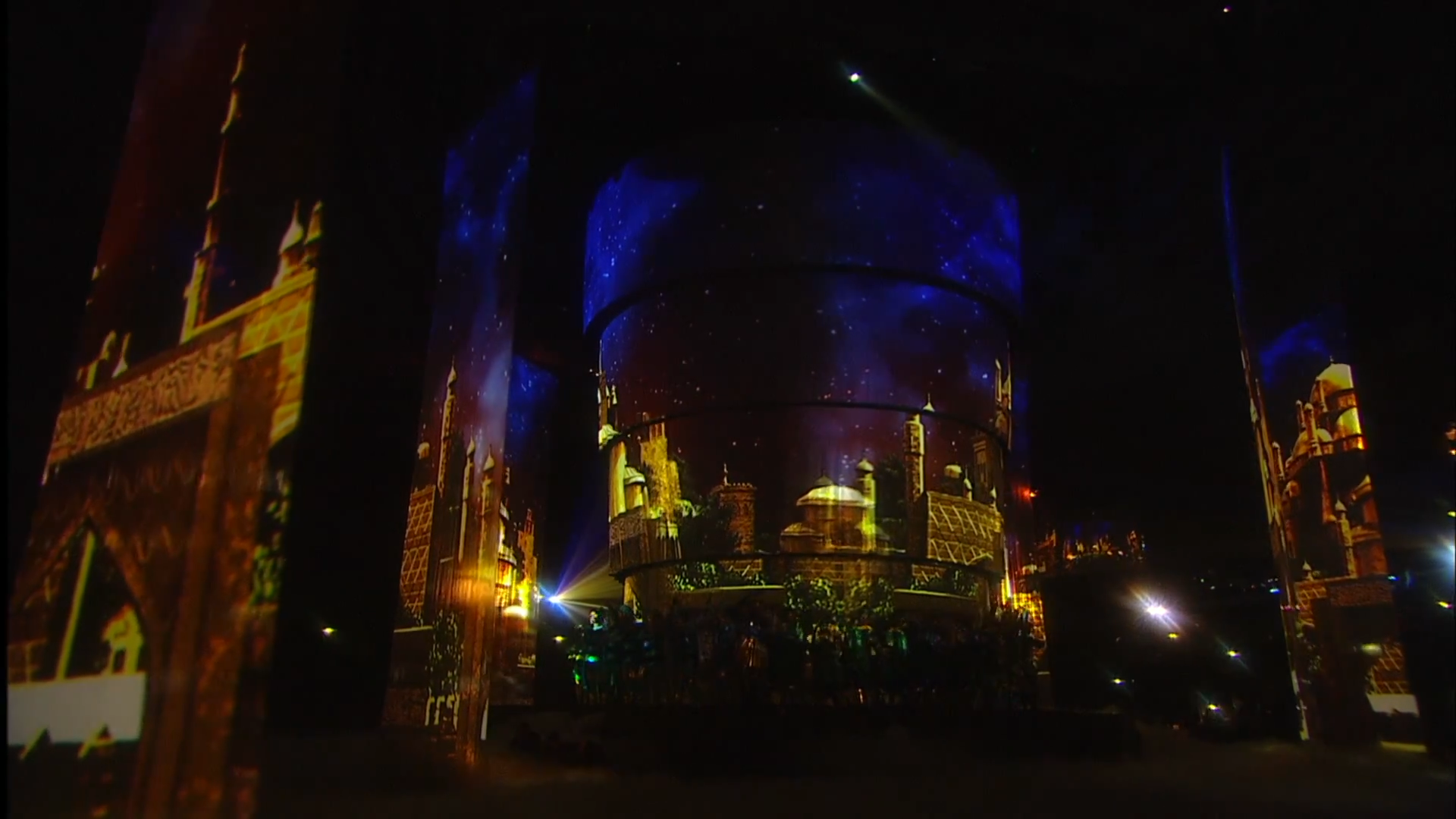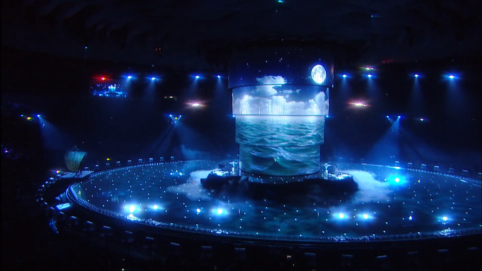 The duration of the ceremony was 2 hours 30 minutes. The basis of the decoration of the play was a multiple cascade of pools with a depth of five centimeters to three meters, the Central projection dome. Stretch projection tulles that stretched straight out of the water. The original Projection video content was coined in style and animation by a team of Lioness experts.