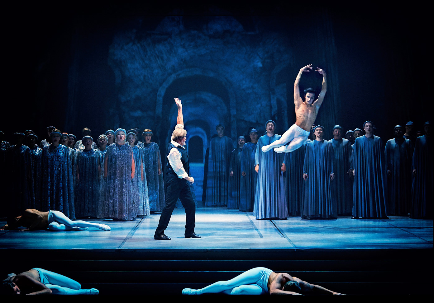 A performance that combines different types of arts: symphonic music, vocal art and ballet. On the stage, the central place is taken by the director, choreographer, leading actor Vladimir Vasiliev. To the 80th anniversary of the legendary dancer, the premiere of the play "And the eternal light will shine" to the music "Requiem" by Mozart is timed.