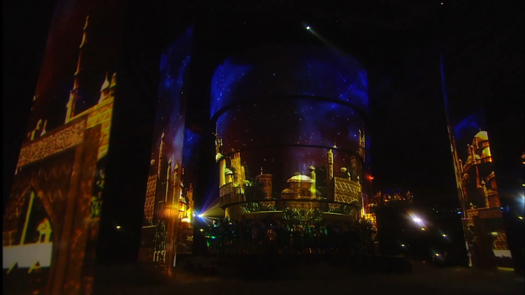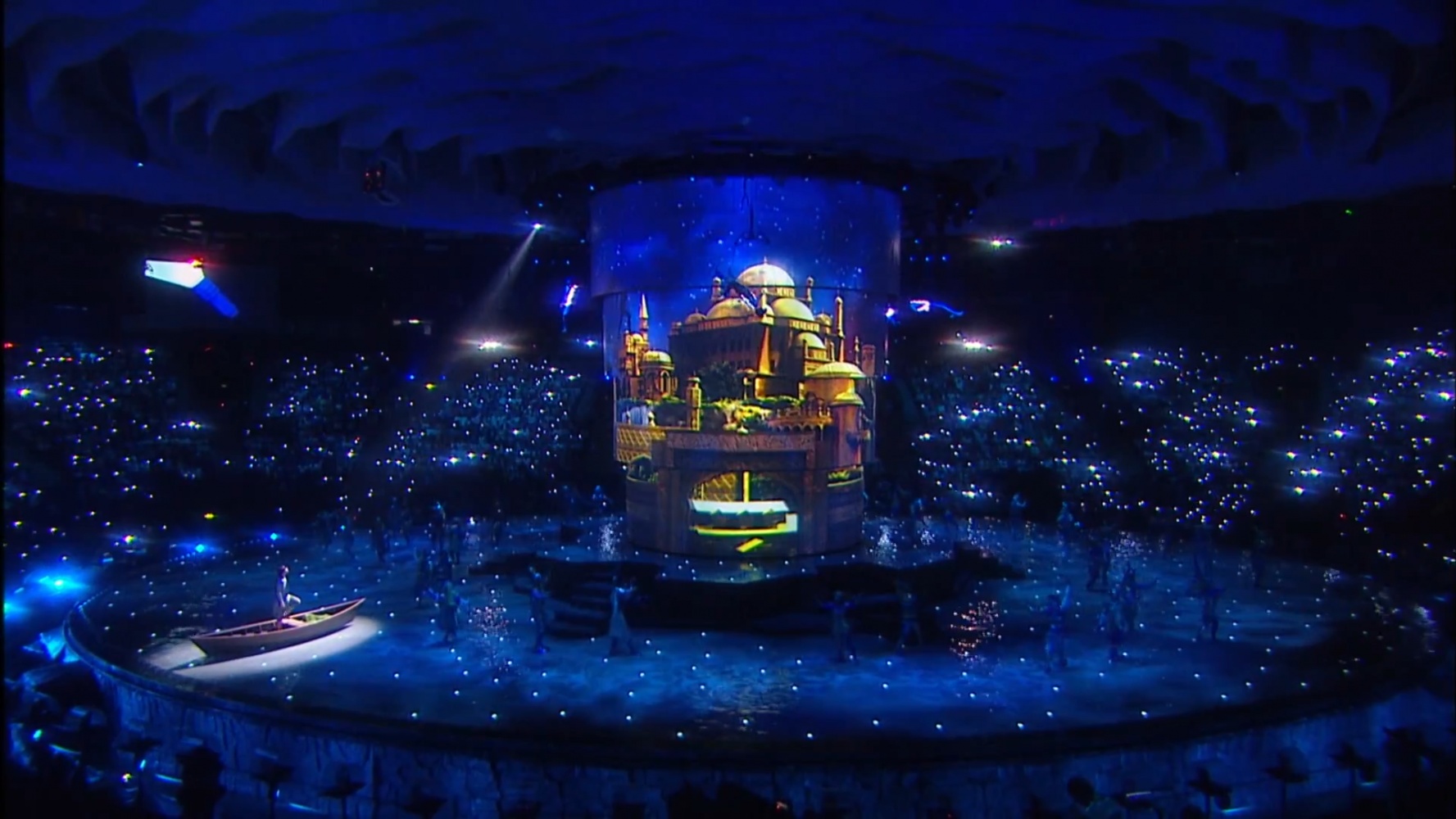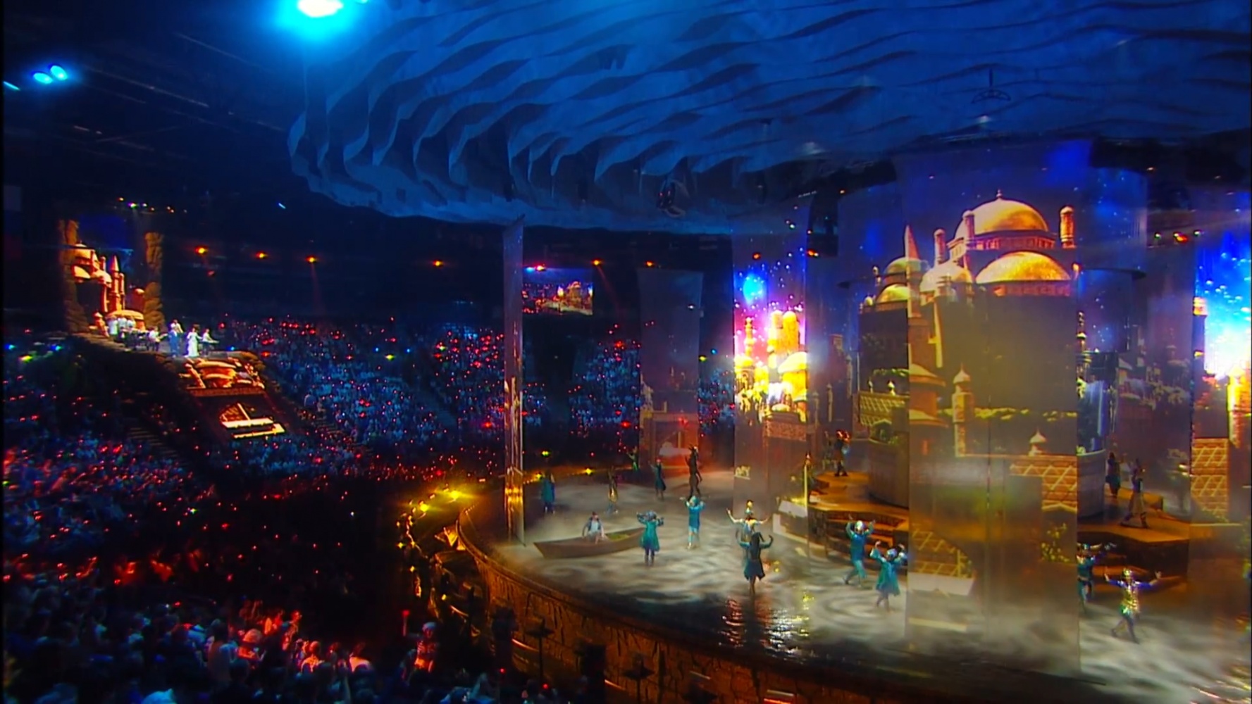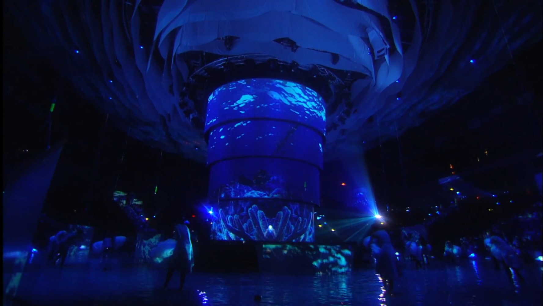 The duration of the ceremony was 2 hours 30 minutes. The basis of the decoration of the play was a multiple cascade of pools with a depth of five centimeters to three meters, the Central projection dome. Stretch projection tulles that stretched straight out of the water. The original Projection video content was coined in style and animation by a team of Lioness experts.
