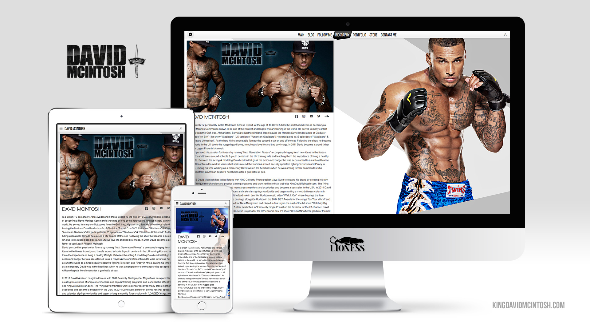 Is a British TV personality, Actor, Model and Fitness Expert. At the age of 16 David fulfilled his childhood dream of becoming a Royal Marines Commando known to be the hardest and longest military training in the world. He served in many conflict zones from the Gulf, Iraq, Afghanistan, Somalia to Northern Ireland. Upon leaving the Marines David landed a role of Gladiator "Tornado" on SKY 1 hit show "Gladiators" (UK version of "American Gladiators"). As the hard hitting unbeatable Tornado he caused a stir on and off the set. He became a popular celebrity in the UK due to his rugged good looks, tumultuous love life and bad boy image. David had a long relationship with Rachel Christie, the first UK black beauty queen to become Ms. England and in 2011 became a proud father to their son Logan Phoenix Mcintosh.