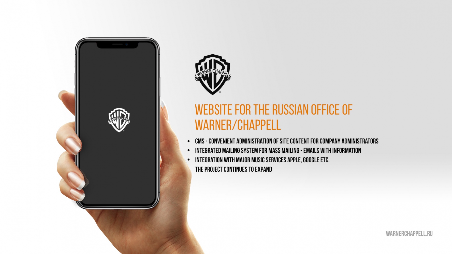 For the Russian company Warner Music Russia. Our team of Web Design specialists has developed a site for Russian clients and users of Warner Chappell Music on its original software core.